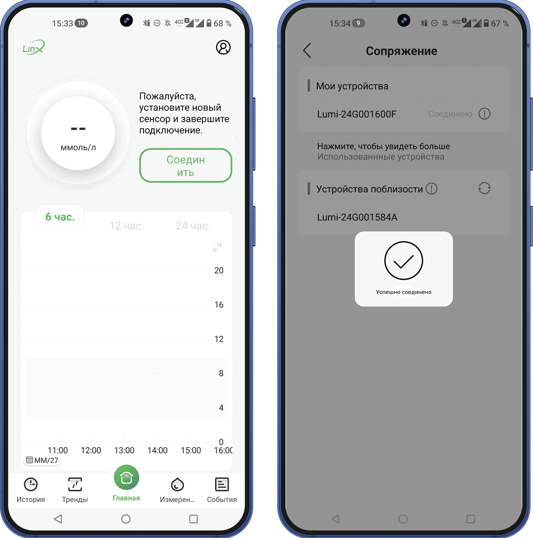Приложение позволяет отслеживать уровень глюкозы в реальном времени, обеспечивая надежное контрольное решение для диабетиков.